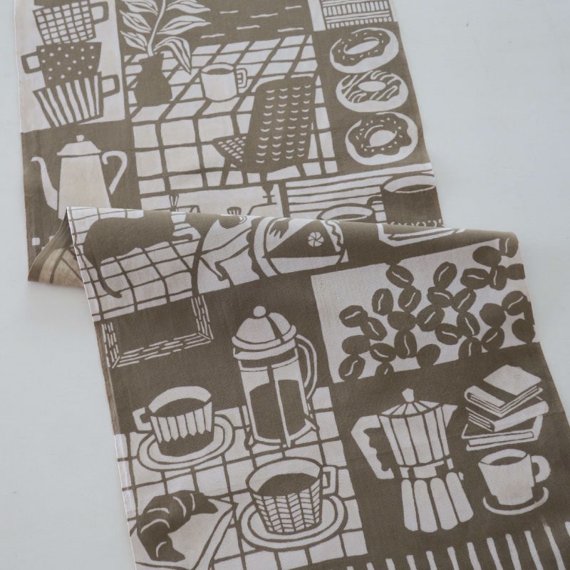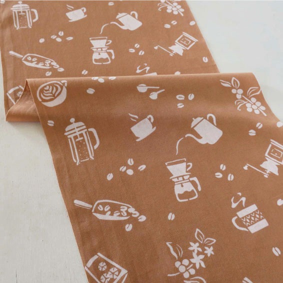 手染め手ぬぐい:コーヒーのある時間柄(色:ブラウン) / 型染めamiu