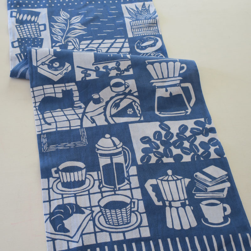 手染め手ぬぐい:コーヒーのある時間柄(色:ブルー) / 型染めamiu